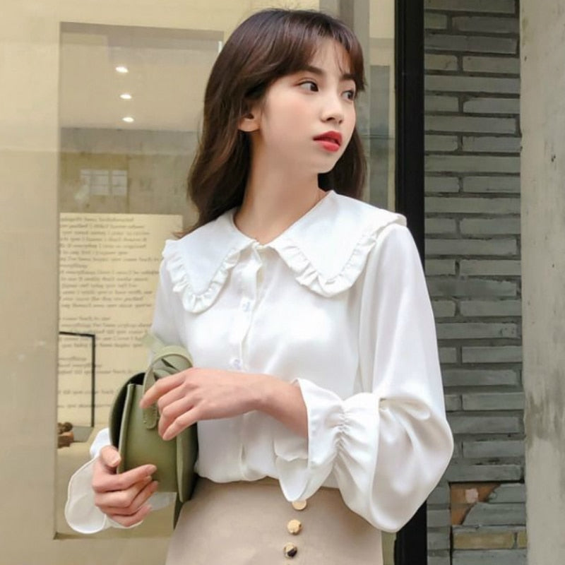 Shirts Women Pure Fresh Simple Leisure Popular Sweet Girls Spring New Arrival Kawaii Blouses Holiday Female Clothes Preppy Style