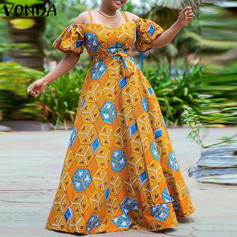Sleeveless Long Maxi Dress VONDA 2022 Women Printed Summer Sundress Casual Baggy Vestido Robes Longue Bohemian Maxi Dress Baggy