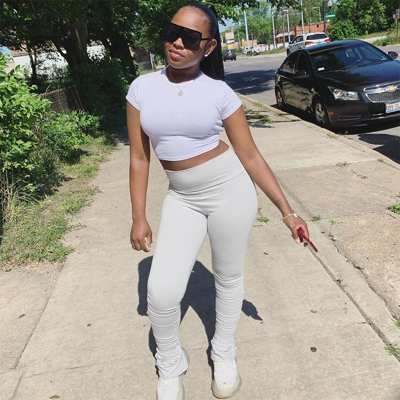 Solid Color Leggings Women Ruched Stacked Pants Casual Slim Fit High Wasit Pencil Trousers Street Style Female Joggers Pants