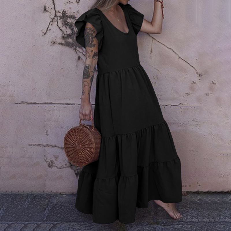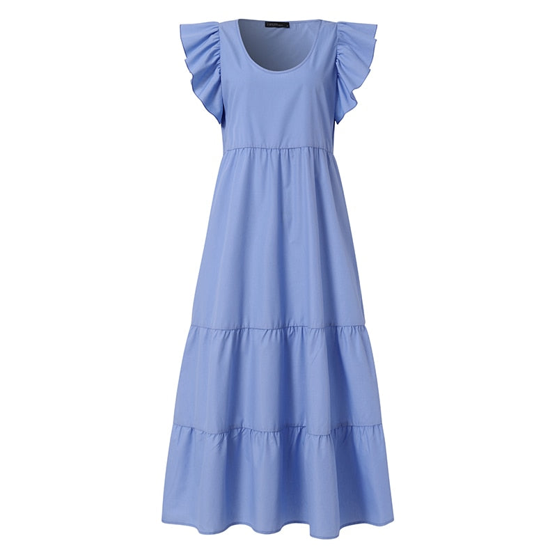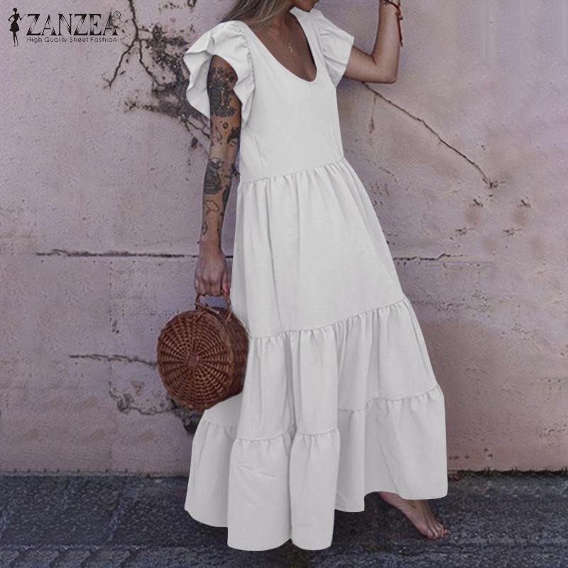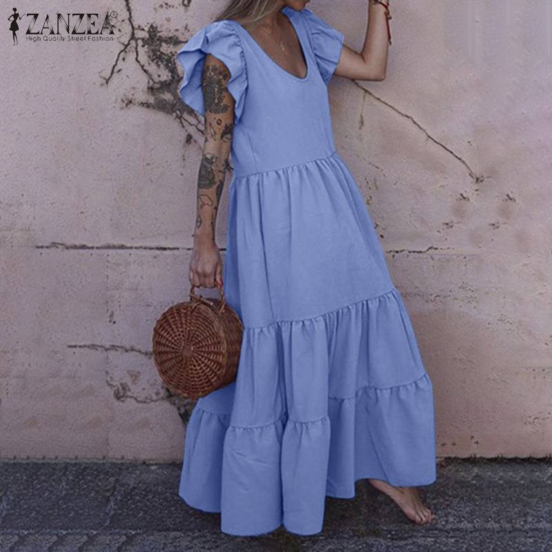 Stylish Ruffles Holiday Vestidos 2022 ZANZEA Summer Long Maxi Dress Women Butterfly Sleeve Solid Party Sundress Kaftan