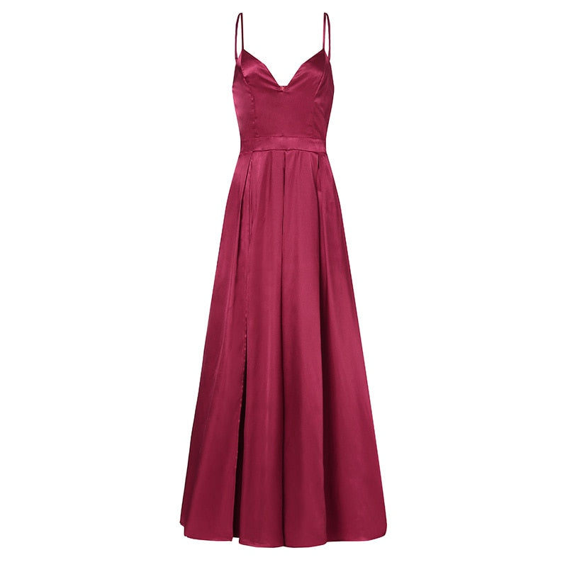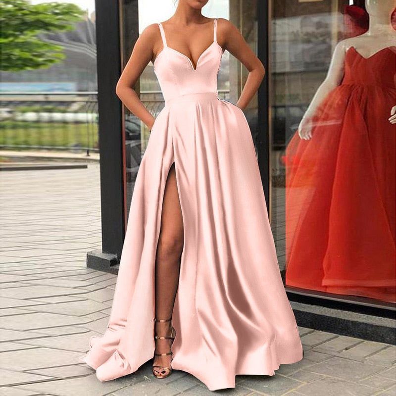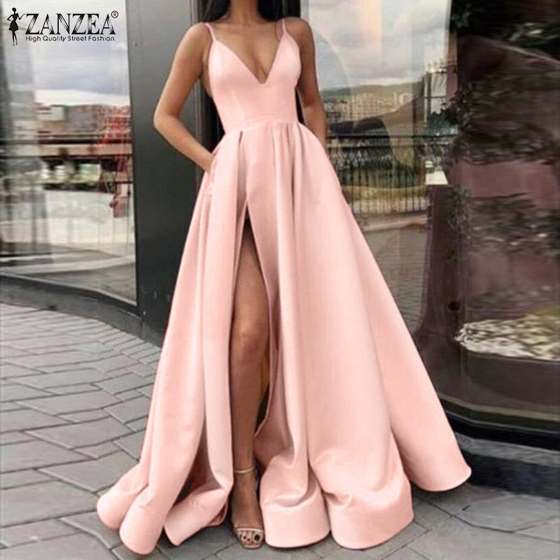 Stylish V Neck High Split Hem Long Sundress ZANZEA Sexy Women Summer Party Dress Casual Slim Solid Stain Vestidos Slip Dresses