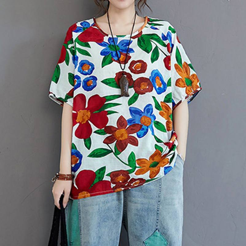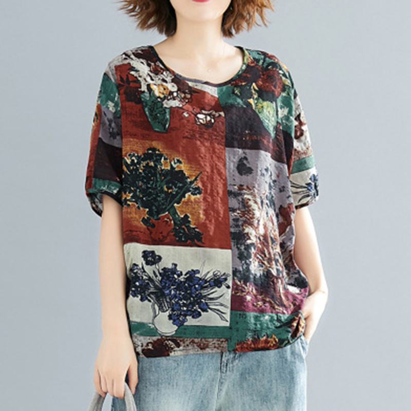 Summer Blouse ZANZEA Women Vintage Printed Tops Casual O Neck Short Sleeve Shirt Female Loose Tunic Blusas Chemise