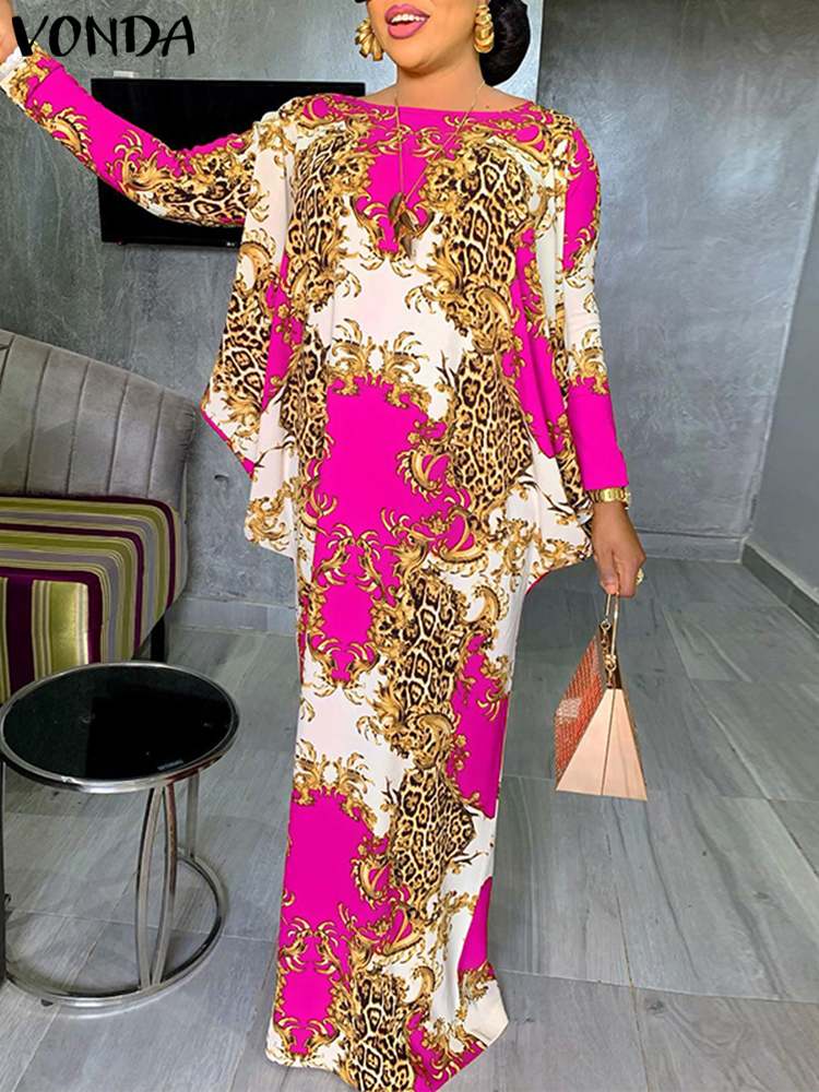 Summer Holiday Dress Women Bohemian Dress 2022 VONDA Long Sleeve Vintage Printed Sundress Fashion Party Vestidos Femme Robe