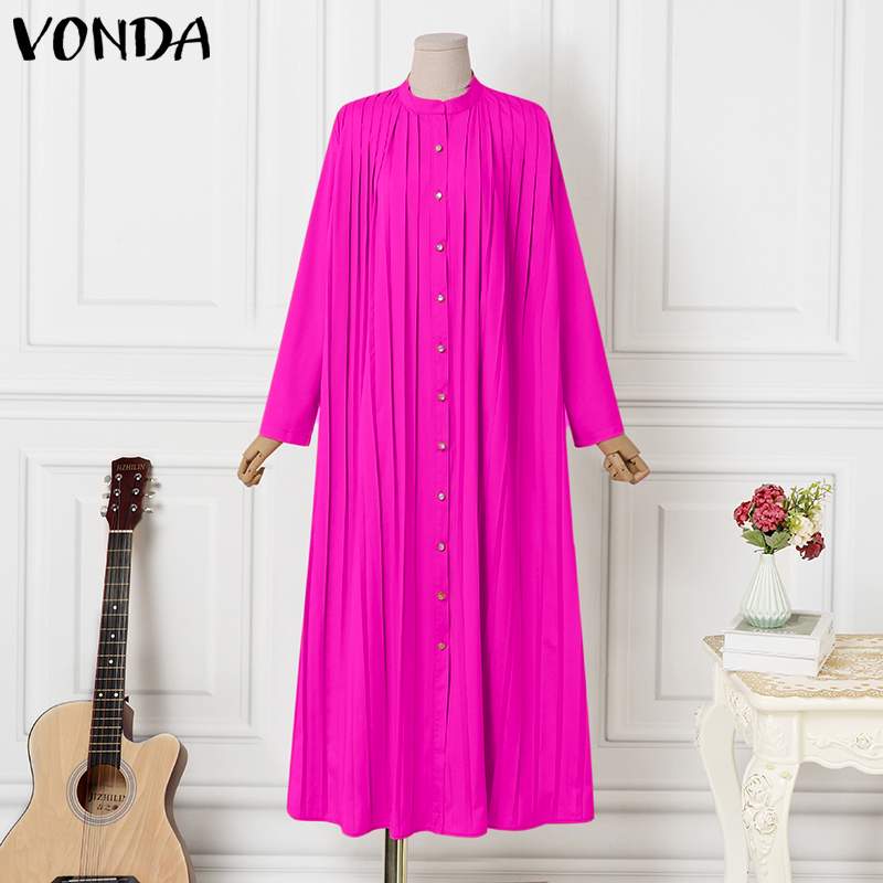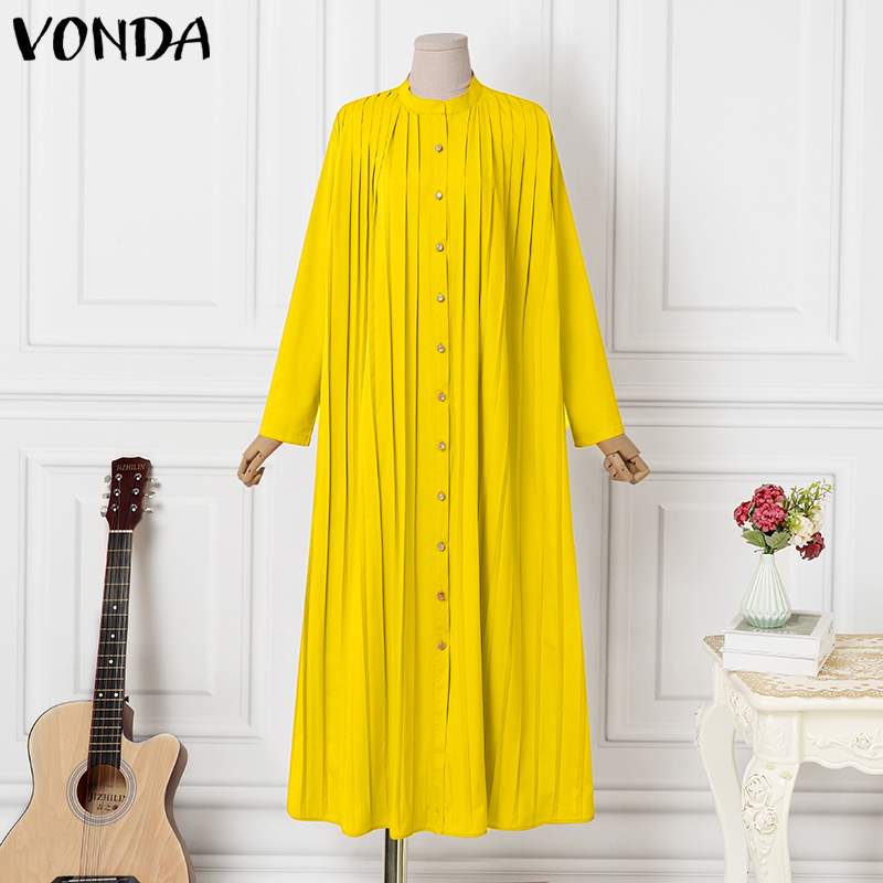 Summer Long Dress 2022 VONDA Vintage Women Sundress Long Sleeve Button Up Dress Autumn Holiday Loose Long Shirt Vestidos