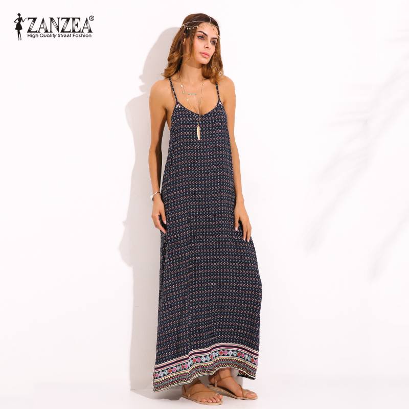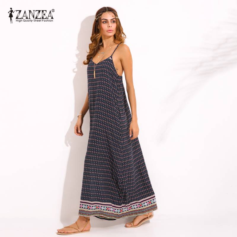 Summer  Maxi Long Dress ZANZEA 2022 Womens Sexy V Neck Spaghetti Strap Floral Print Beach Vestido Casual Sarafans Sundress