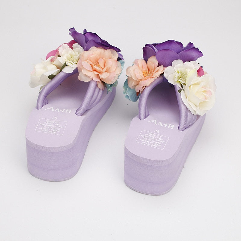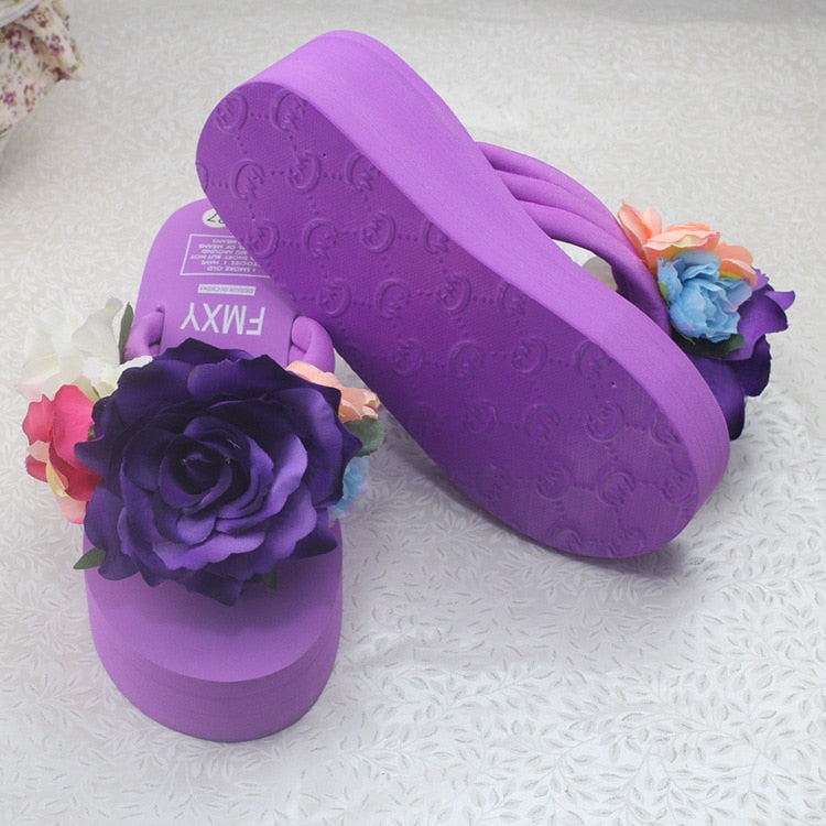Summer Women Slippers Bohemia Shoes Comfortable Soft Slippers High Quality Cool Beach Vacation Elastic Handmade flowers Shoes