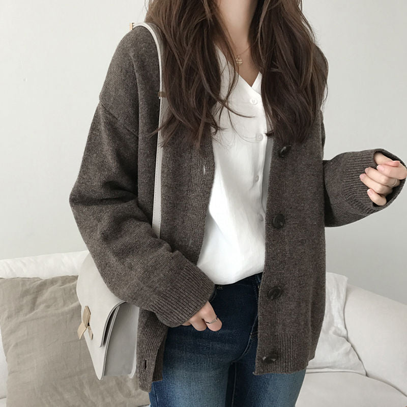 Sweaters Women Autumn Solid Single Breasted Cardigans V-neck Leisure Warm Loose Female Jumpers Knit Korean Simple Outwears Retro
