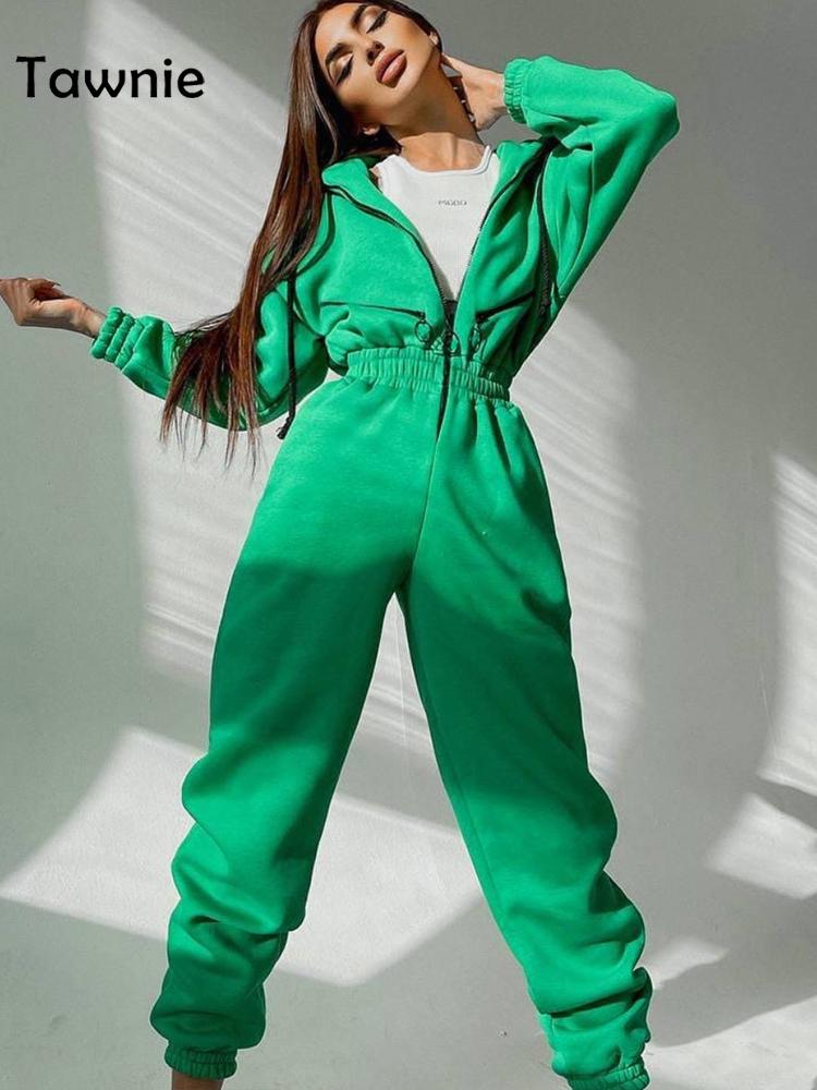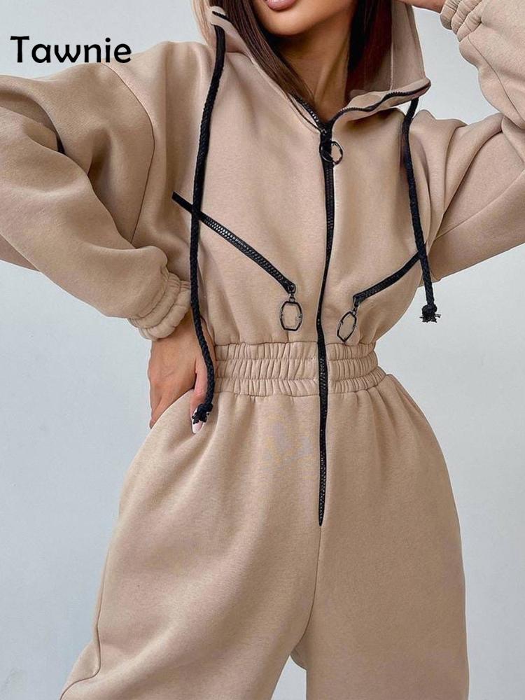 Tawnie Elegant Women's Jumpsuit Warm Overalls Fleece Hooded Zipper Drawstring Jumpsuit and Bodysuit Casual One Piece Ladies 2022