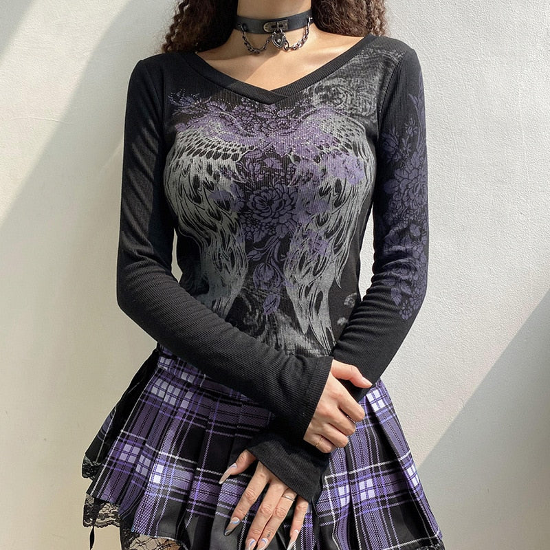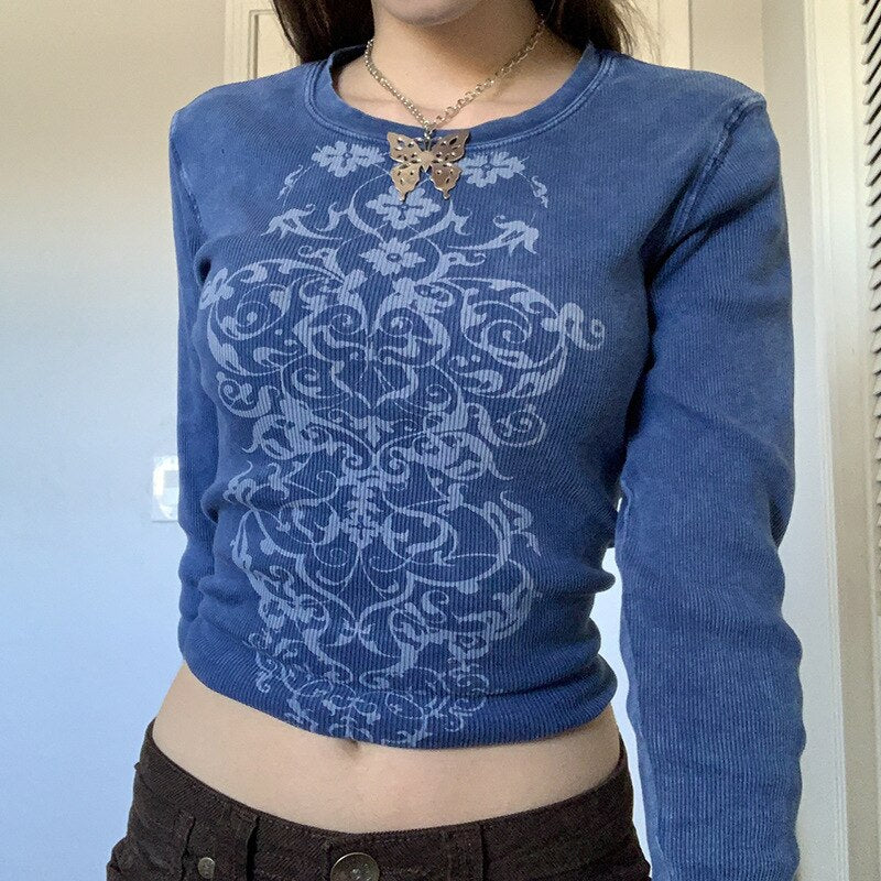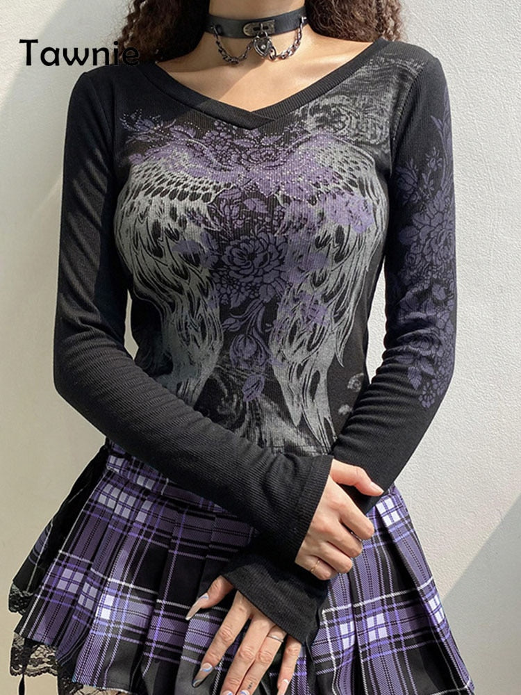 Tawnie Printed Y2K Graphic Women T Shirts 2022 Long Sleeve Tee Shirt Fairy Grunge Fashion Crop Tops Autumn Vintage Clothes