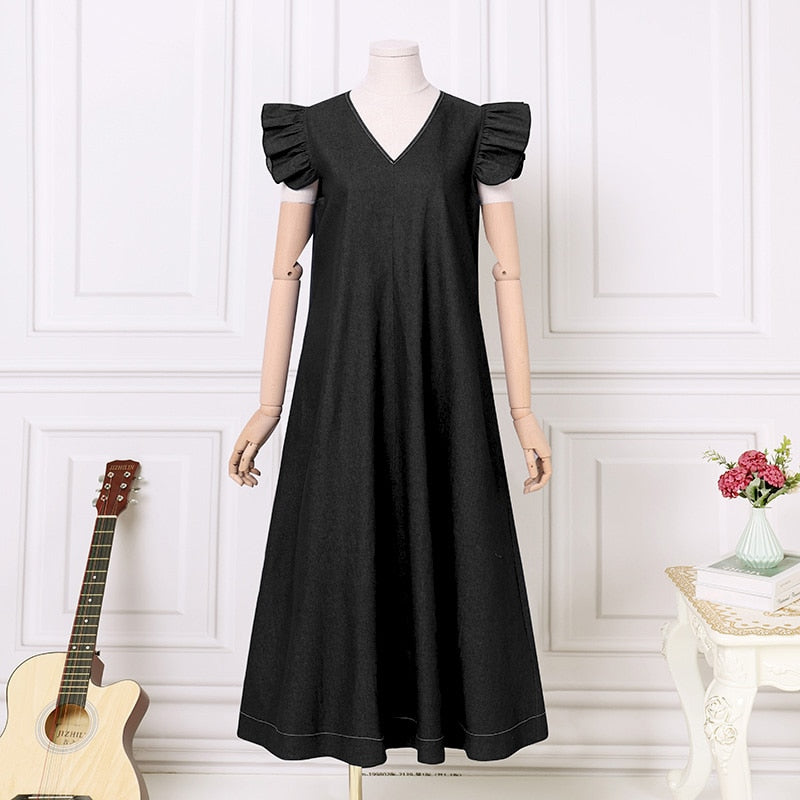Vintage Women Denim Blue Dress 2022 Summer Ruffle Sleeveless Maxi Dresses ZANZEA Casual Solid A-line V-neck Oversized Sundress 7