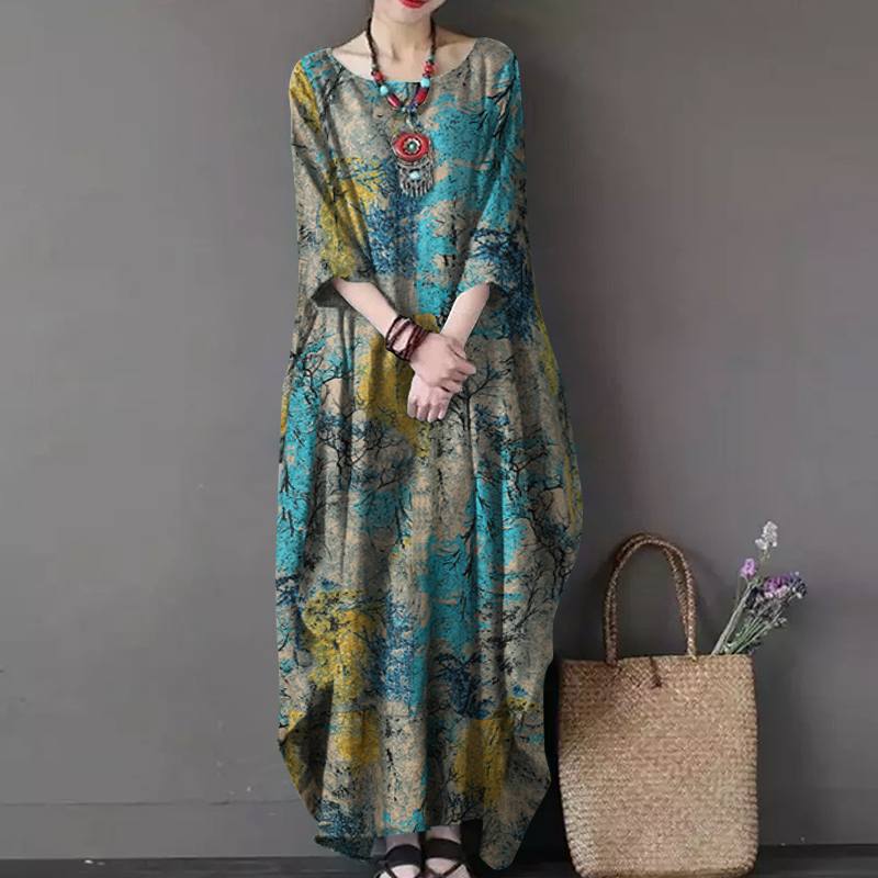 Vintage Women Sundress ZANZEA Casual Long Sleeve Printed Maxi Long Dress Kaftan Female Baggy Floral Vestidos Dresses