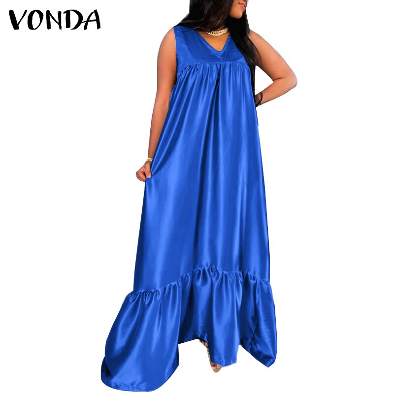 VONDA 2022 Summer Sleeveless V Neck Pleated Dress Women Holiday Party Tank Dresses Femme Bohemian Party Vestidos Oversized
