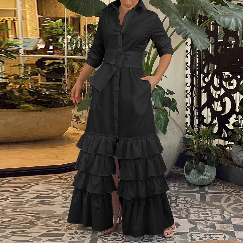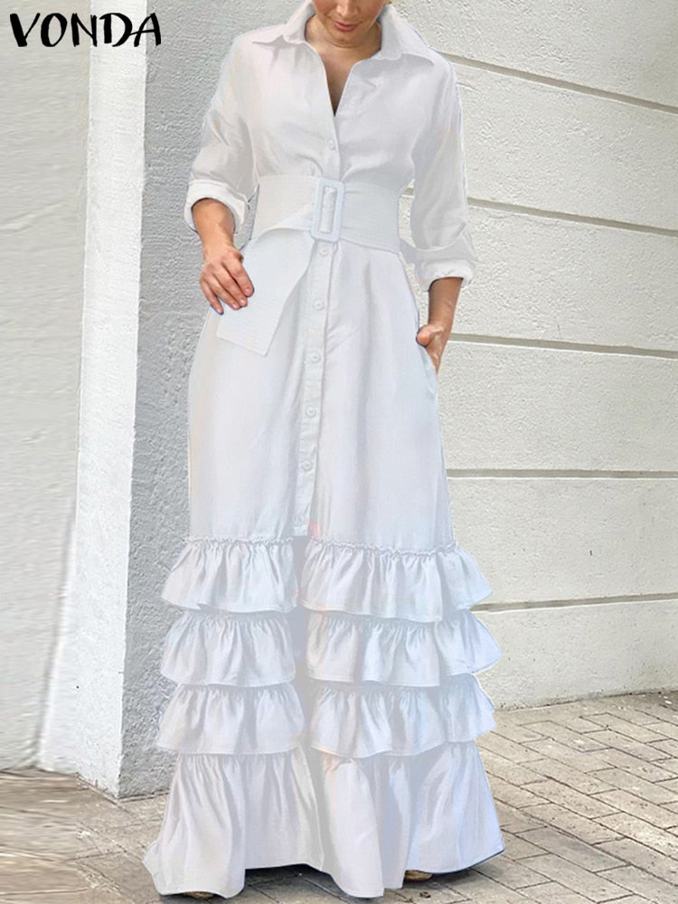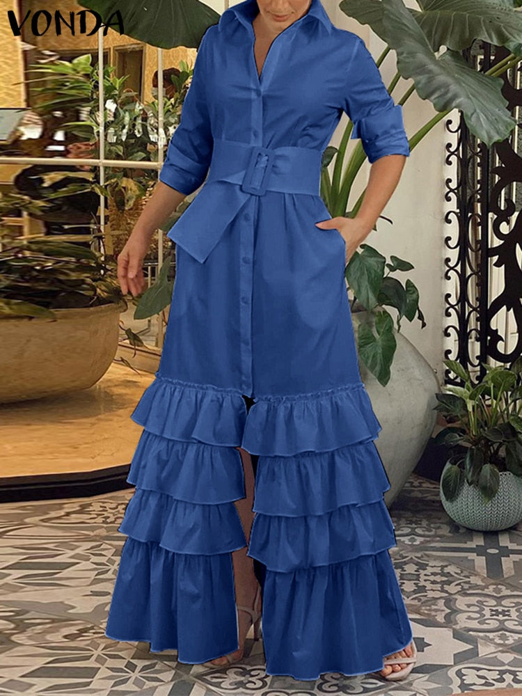 VONDA Autumn Shirt Dress 2022 Women Party Maxi Dresses Ladies Long Sleeve Solid Bohemian Vestidos Lapel Button Down Sundress