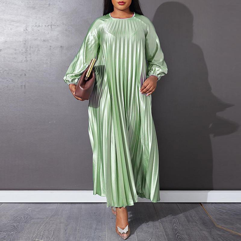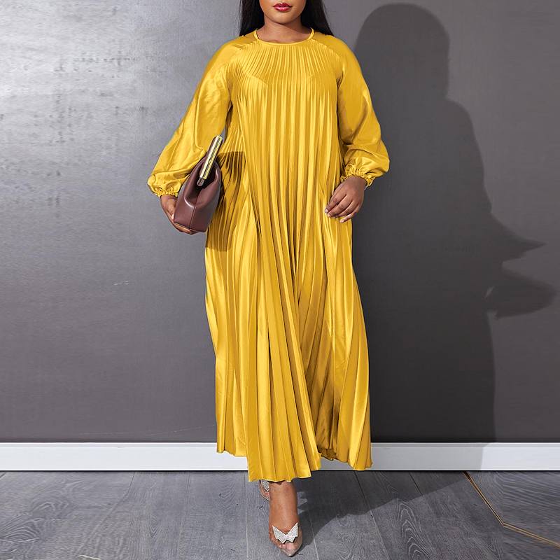 Model Number: Woman Solid O-Neck Holiday Pleated Dress