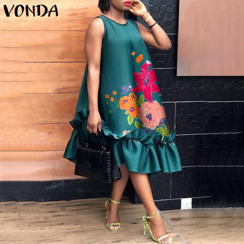 VONDA Summer Bohemian Dress Vintage Solid Maxi Long Dress Party Sundress 2022 VONDA Casual Vestidos Femme Loose Robe