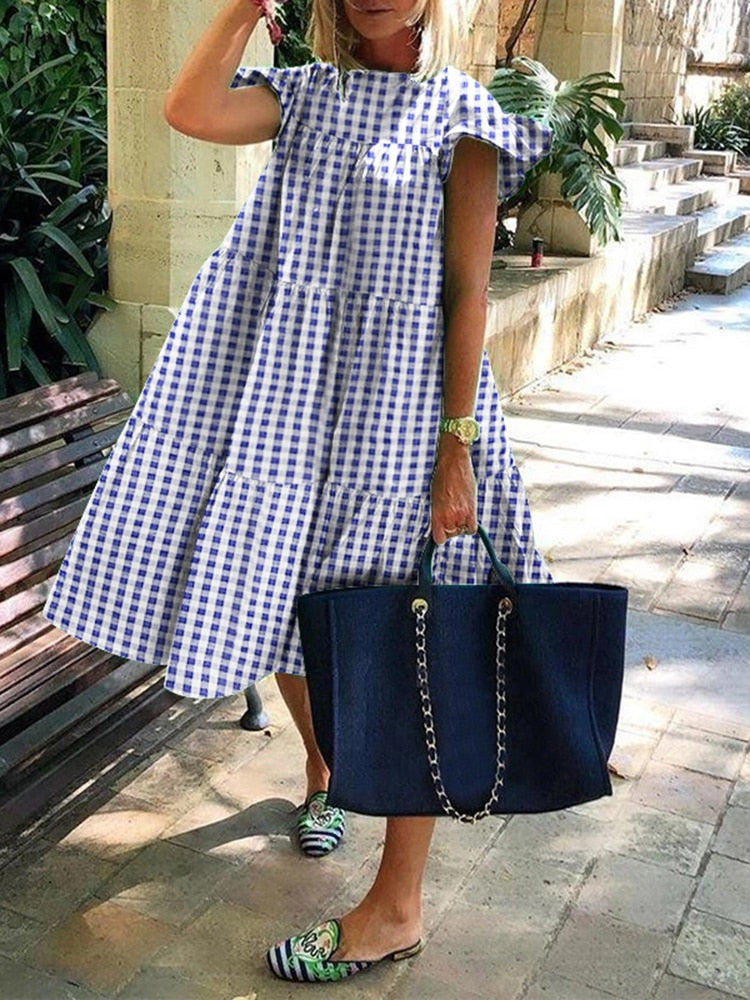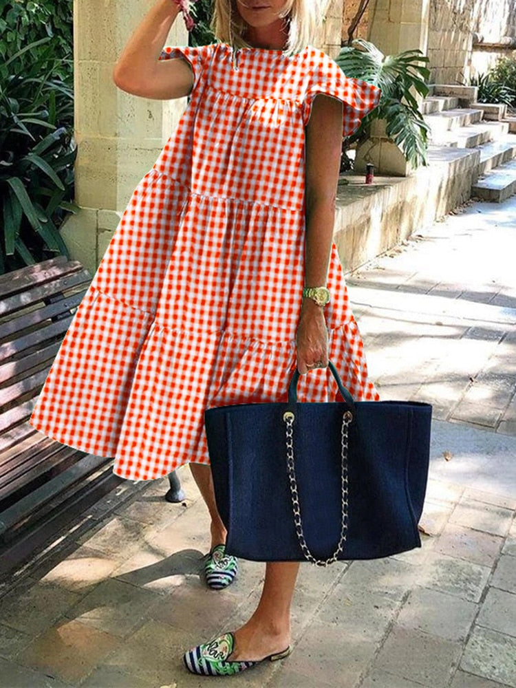 VONDA Summer Cotton Dress Women Casual Short Sleeve Ruffled Cuff Dresses Loose Patchwork Bohemian Vestidos Knee-Length Dress