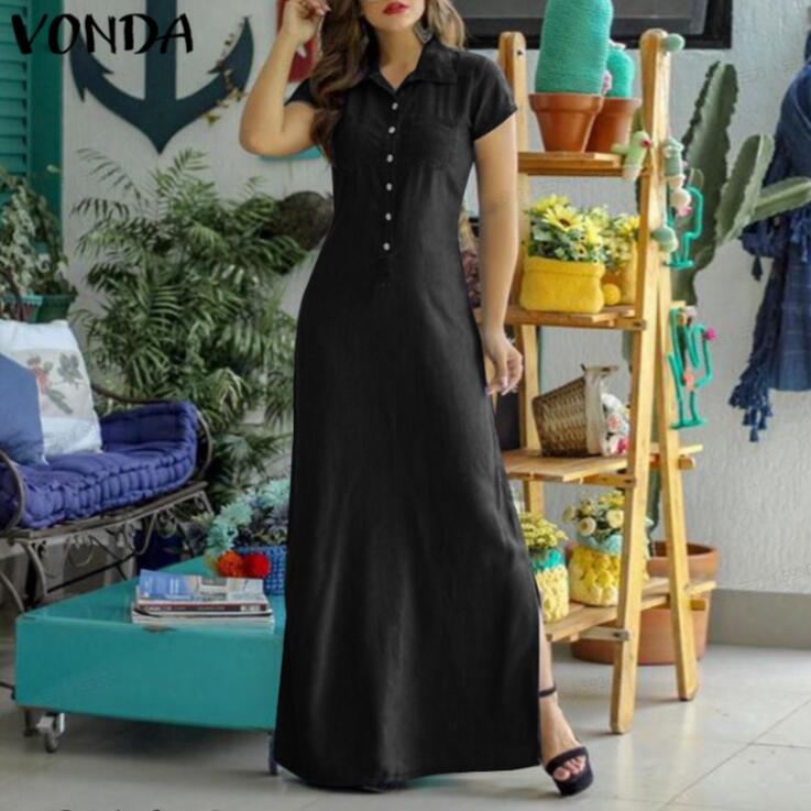 VONDA Summer Elegant Denim Dress 2022 Short Sleeve Lapel Button Down Pure Shirt Dresses Fashion Party Vestido Loose Solid Robe