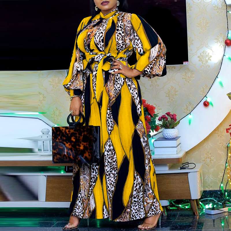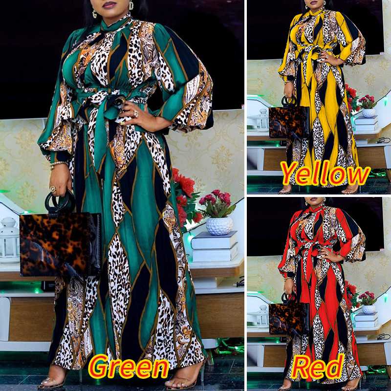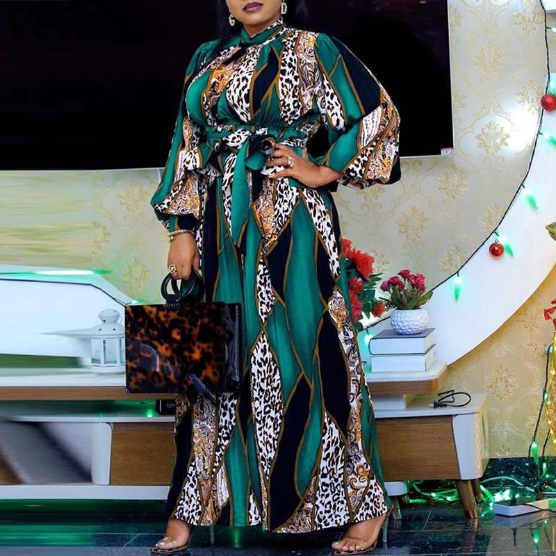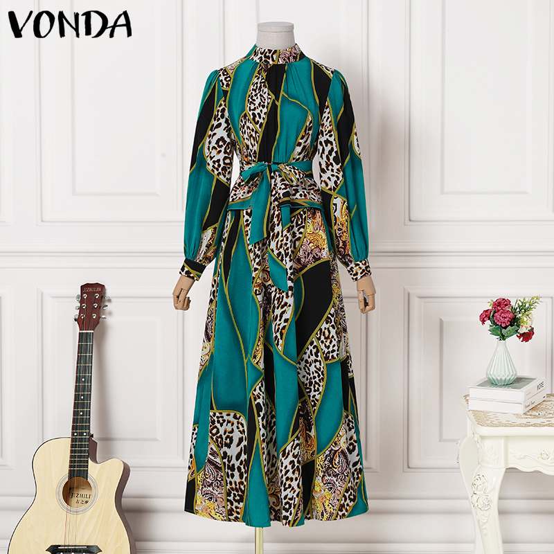 VONDA Women Loose Robes Longue Plus Size Casual O Neck Printed Long Maxi Dress Ladies Long Puff Sleeve Robes Bohemian Vestidos