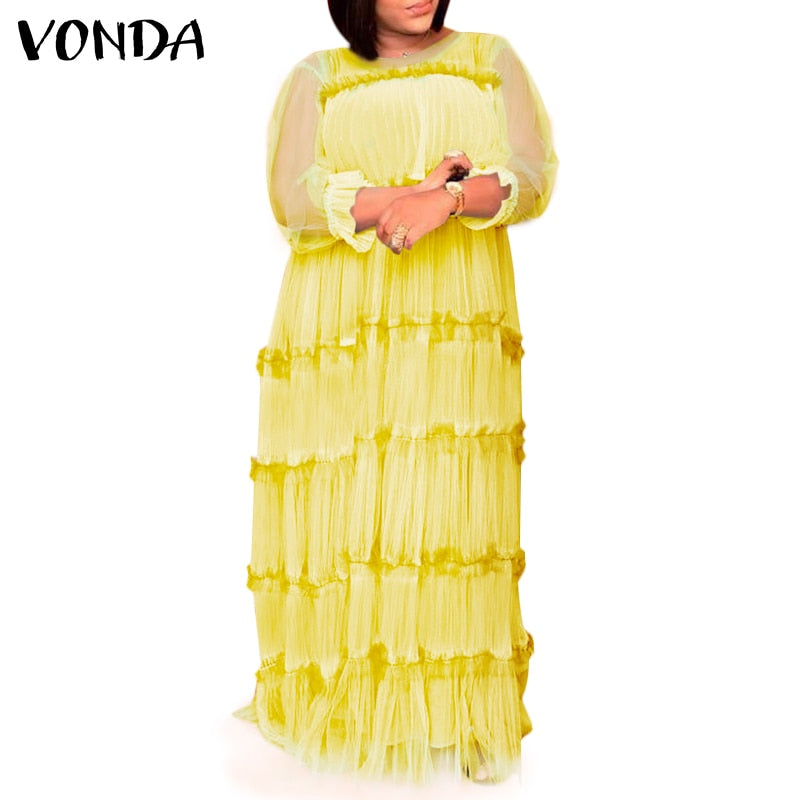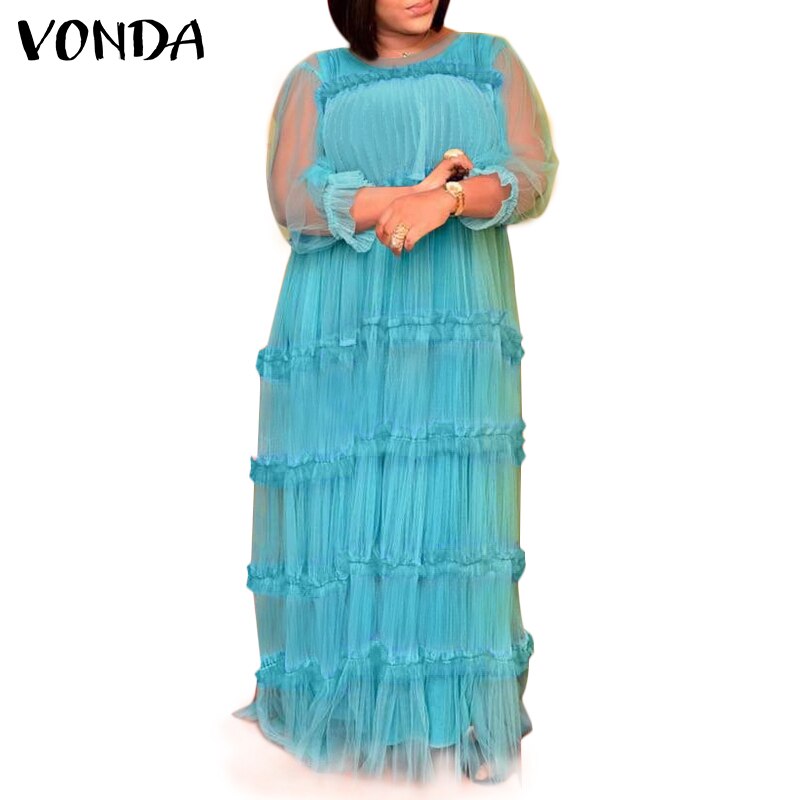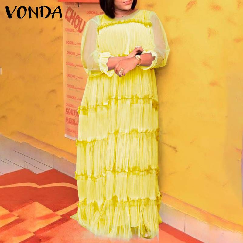 VONDA Women Pleated Dress Summer Sexy See Through Long Maxi Dresses  Holiday Party Dress With Two-piece Sets Femme Robe