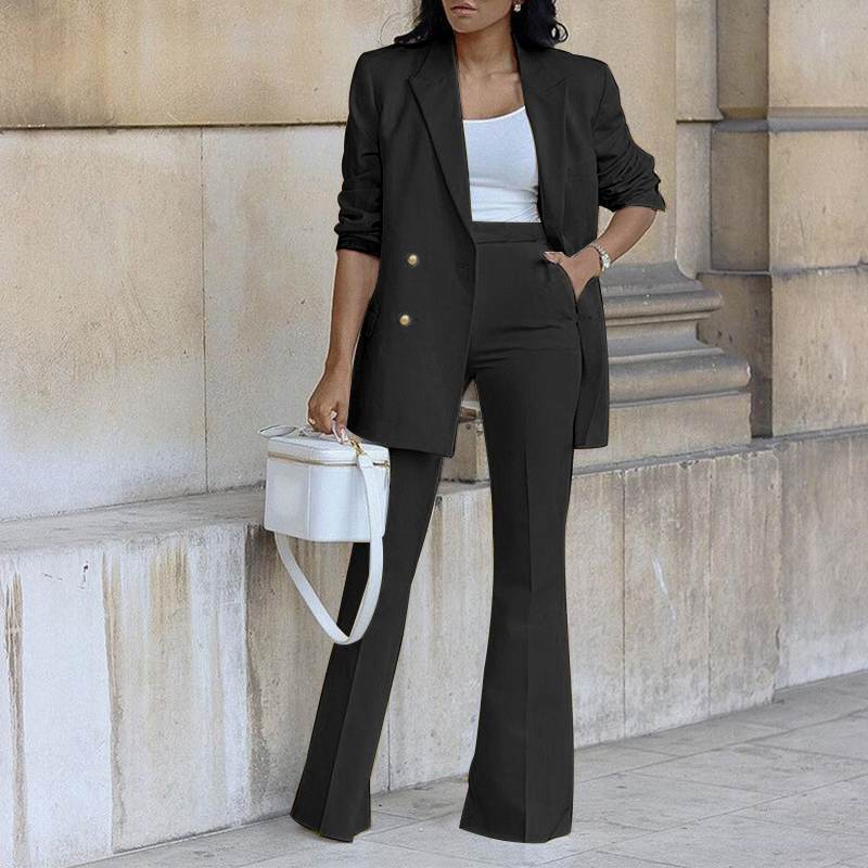Model Number: Femme Solid Casual Blazer Button Pant Set