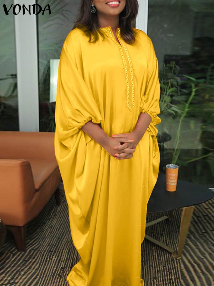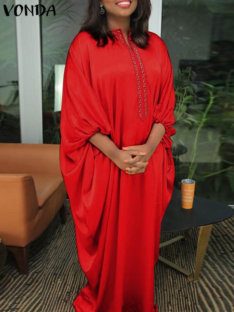 VONDA Y2K Oversized Female Summer Sundress Holiday Party Robe Casual Loose Vestido Women 2022 Vintage 3/4 Sleeve Street Dress 4#