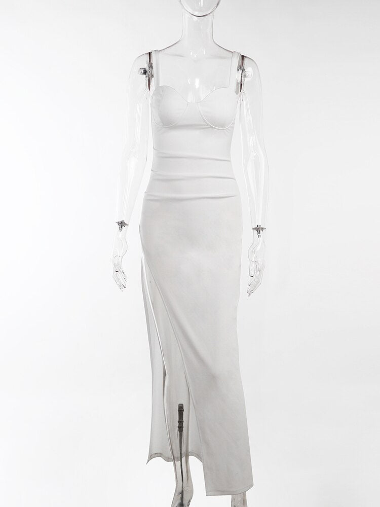 WannaThis Clubwear Midi Dress Women High Split Folds White High Split Elegant Bodycon Sexy Party Chic Christmas Tank Dress 2021