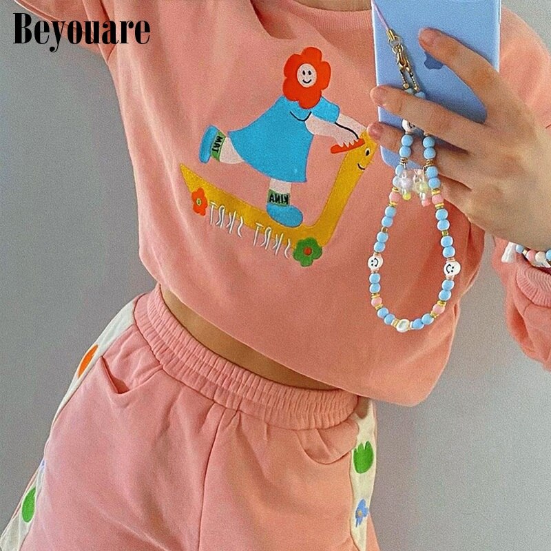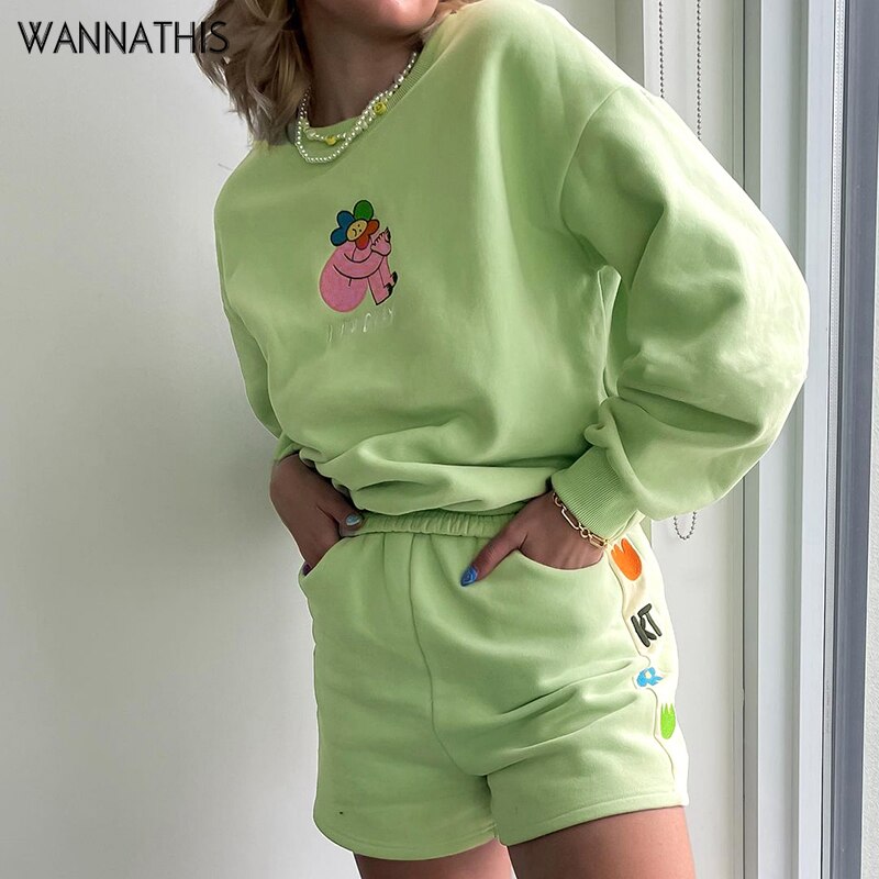 WannaThis Cute Sweet Cartoon Embroidered Sweatshirts Kawaii Girl Cotton 2021 O Neck Long Sleeve Loose Women Pullover Autumn New