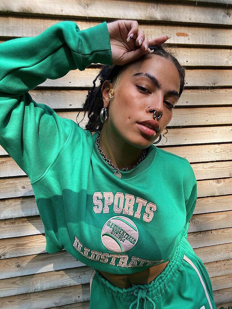 WannaThis Letter Printing Women Sweatshirts Cotton Green Fitness O Neck Long Sleeve Pullover Fashion Autumn Winter Harajuku Tops