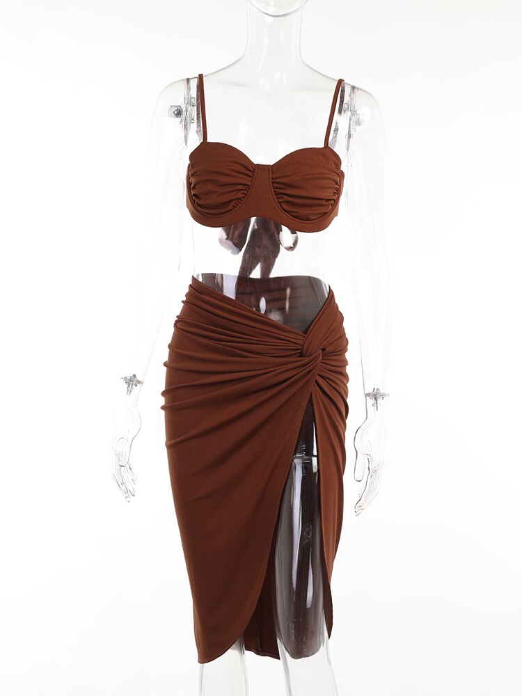 WannaThis Two Piece Sets Women Ankle-Length Skirts Women Bandage Bra Crop Tops Sexy Party Outfit Vacation Side Split Folds Sets