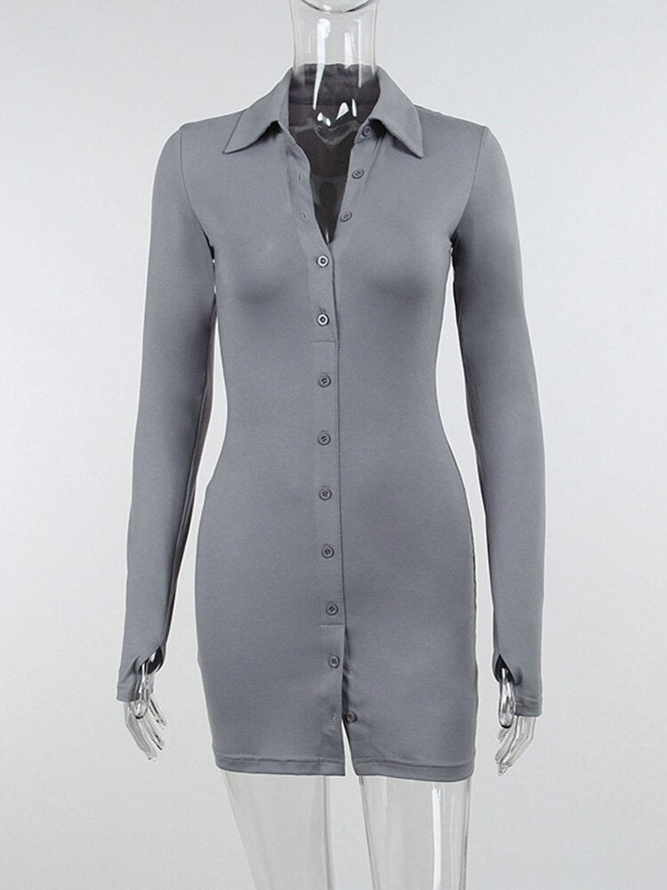 WannaThis Women Mini Dress Button Turn Down Collar Long Sleeve Bodycon Casual Fashion Autumn Ladies Elegant Sexy Shirt Dresses