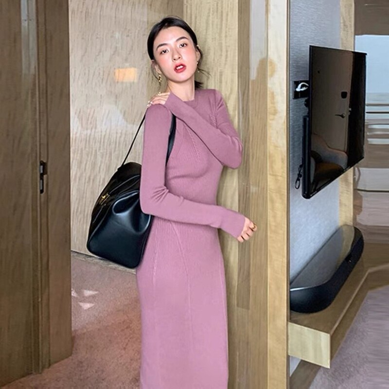 Winter Women Knitted Sweater Long Sleeve Basic Solid Slim Midi Bodycon Dress