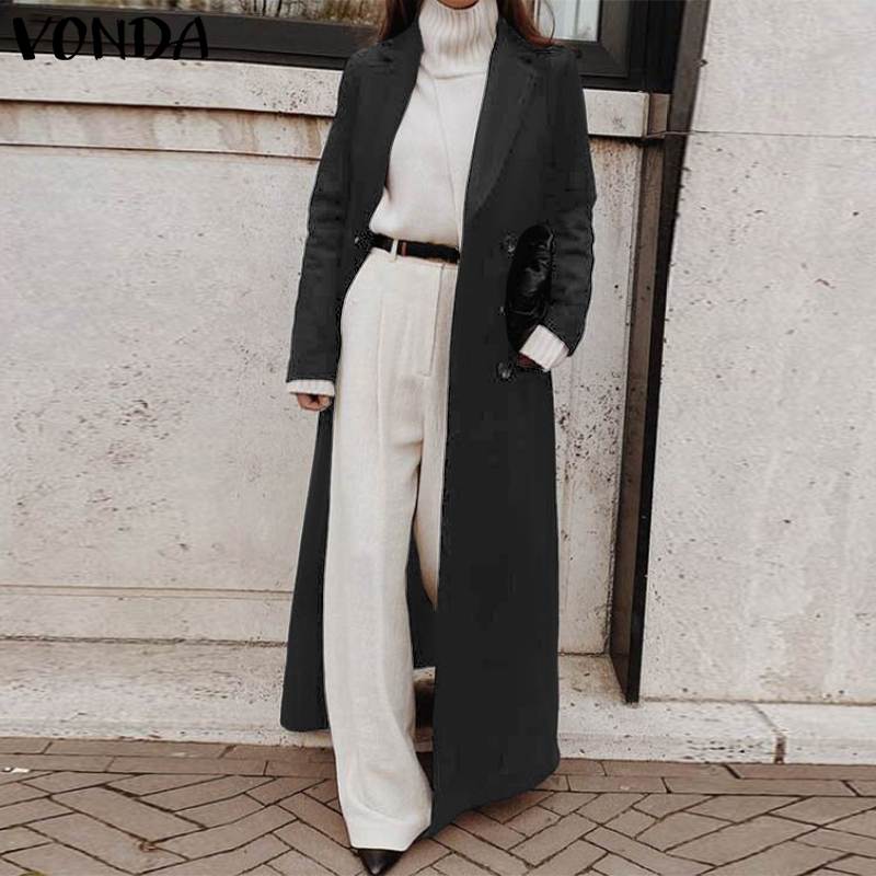 Women Autumn Cardigan Coats Winter Warm Black Overcoats VONDA 2021 Ladies Casual Jackets Loose Long Outwears Oversized Jackets