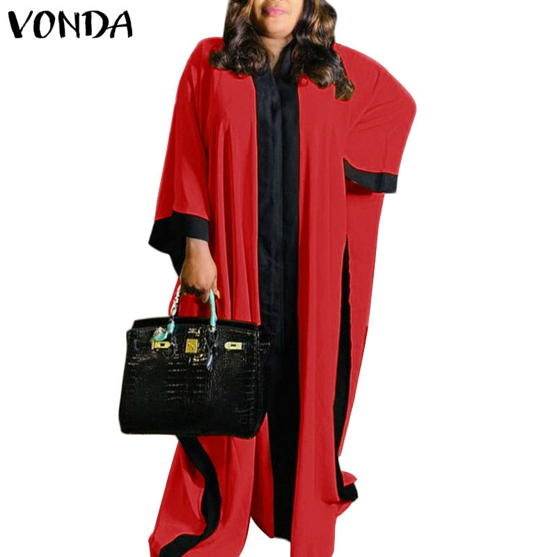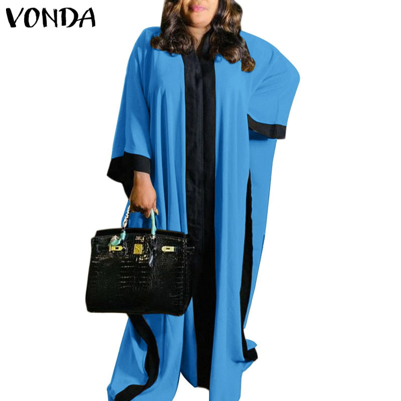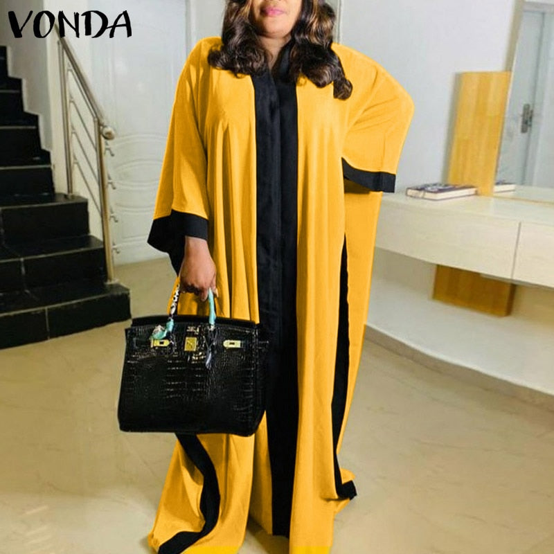 Women Baggy Dresses VONDA 2022 Ladies Bohemian Vestidos Female Sexy V Neck Patchwork Print Robes Longue Oversized Sundress
