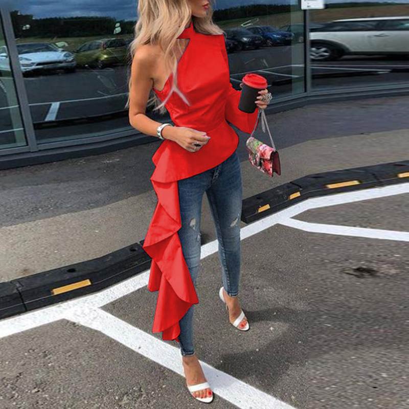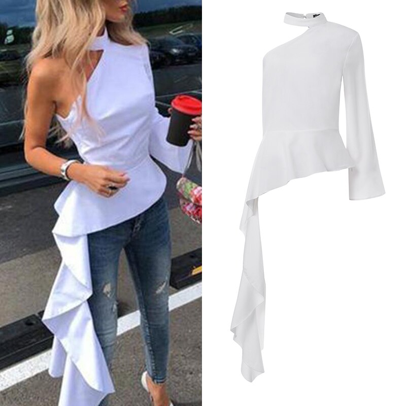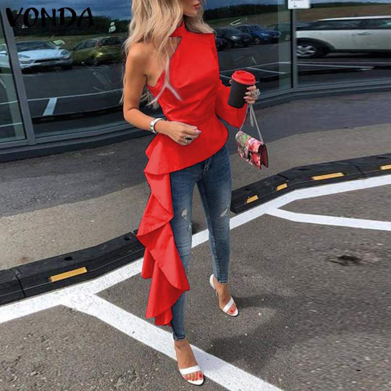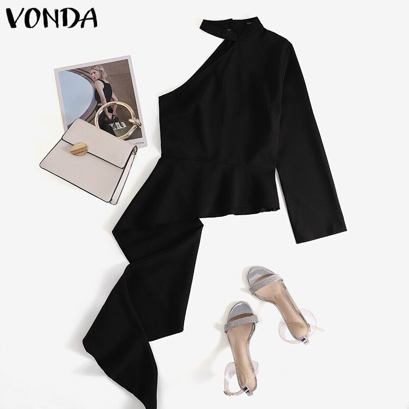 Women Blouse VONDA 2022 Ladies Off Shoulder Asymmetric Long Shirts Sexy One Sleeve Irregular Office Tops Bohemian Blusas