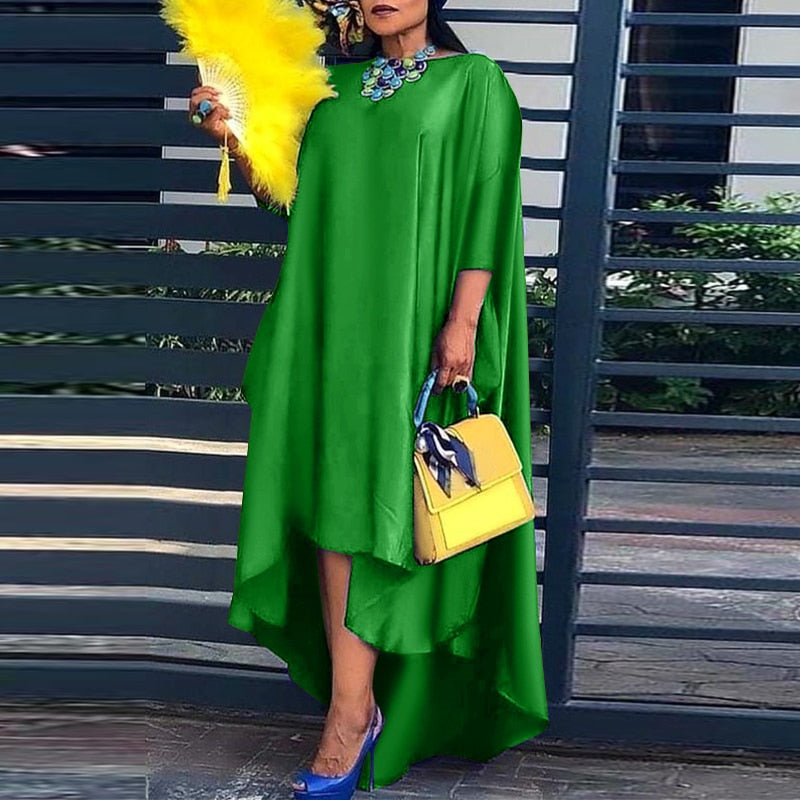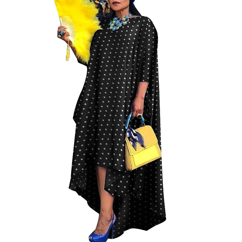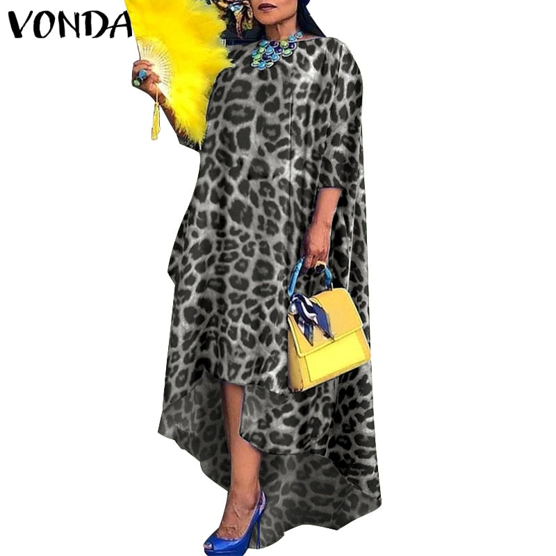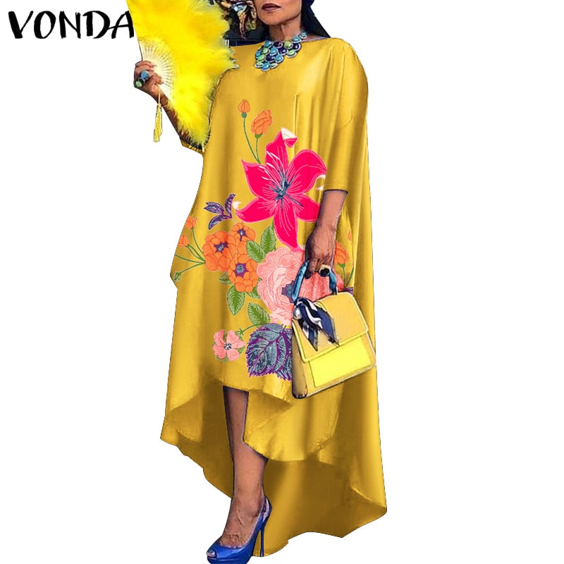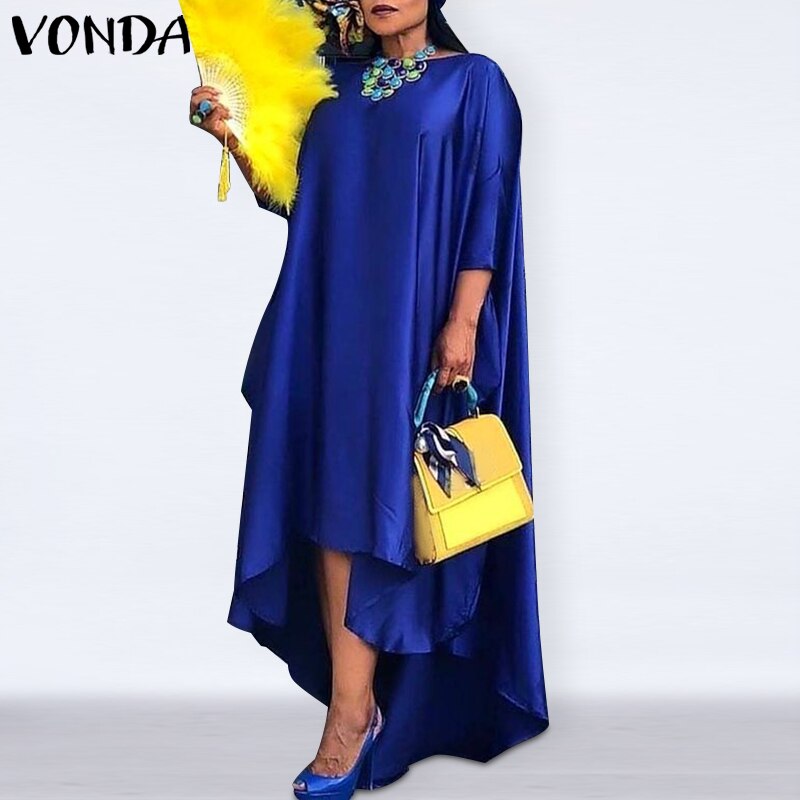 Women Casual 2/3 Sleeve Irregular Maxi Dress 2022 VONDA Robe Spring O Neck Asymmetrical Pleated Vestidos Elegant Long Sundress