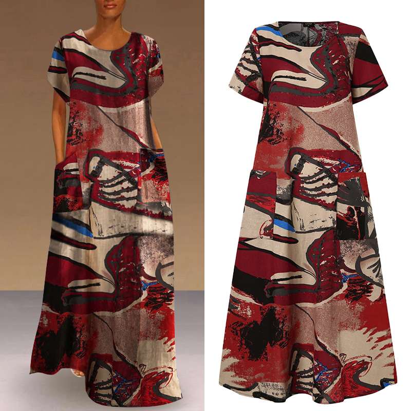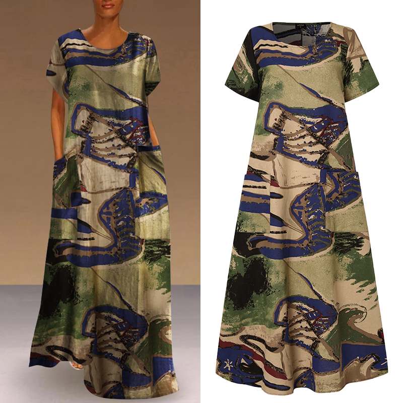 Model Number: Women Casual O Neck Short Sleeve Printed Dress