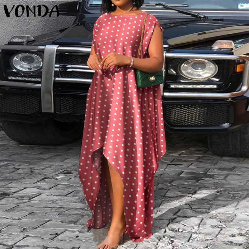 Women Dress VONDA Vintage Polka Dot Printed Asymmetric Hem Vestidos Irregular Hem Dresses O Neck Sleeveless Sundress