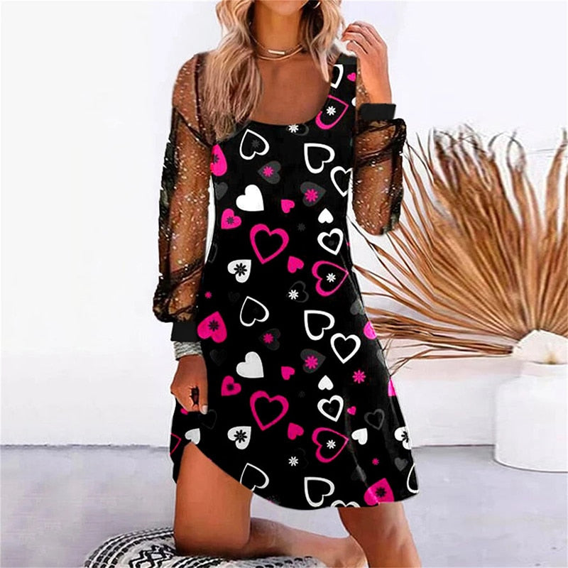 Women Elegant V Neck Mesh Long Sleeve Party Dress Spring Autumn Sexy Lace Patchwork Slim Mini Dress Vintage Femme Dress Vestidos