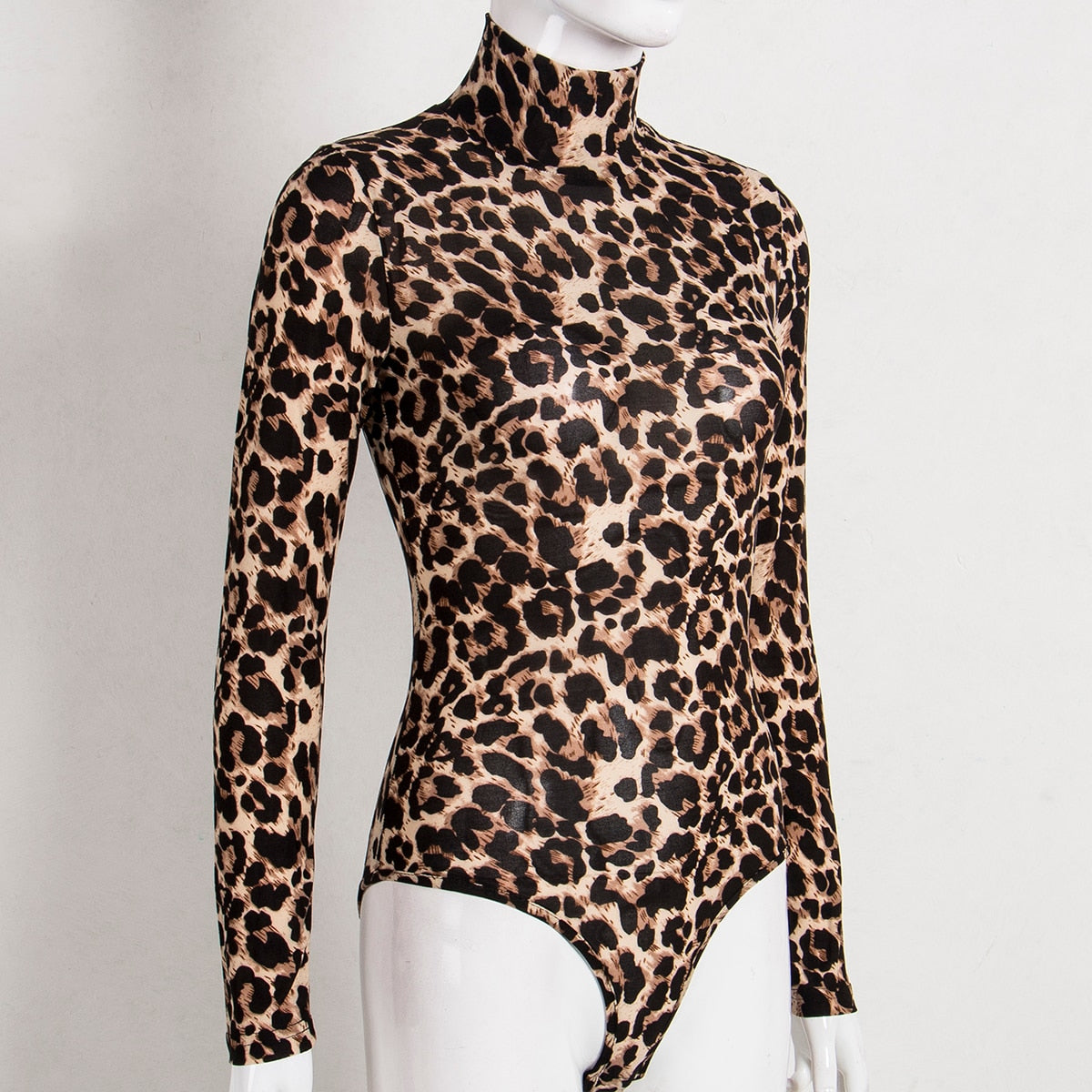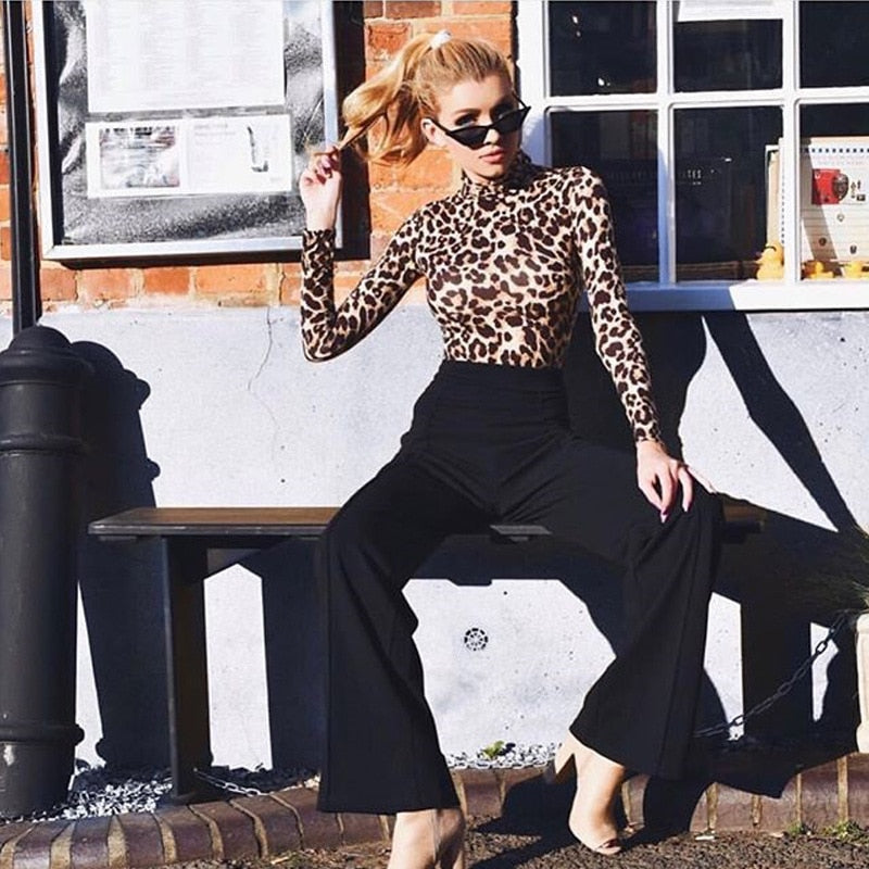 Women Leopard Bodysuit Tops 2021 Autumn Turtleneck Long Sleeve Bodycon Skinny Bodysuits Jumpsuits Ladies Sexy Vintage Club Wear
