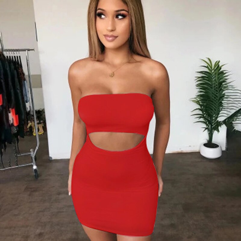 Women Sexy Dress Summer Sundress Female Party Dress Casual Hollow bag hip tube top strapless sleeveless slim dress Halter Dress