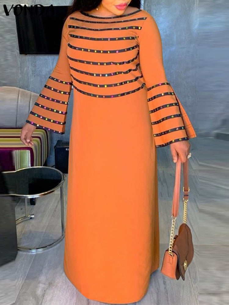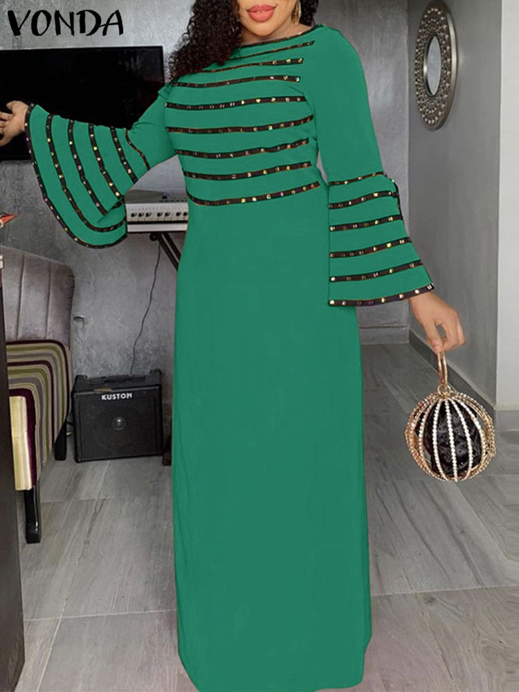 Women Summer Sundress 2022 VONDA Vintage Printed Party Long Maxi Dresses Casual Long Flare Sleeve Vestido Robe Femme Femininas