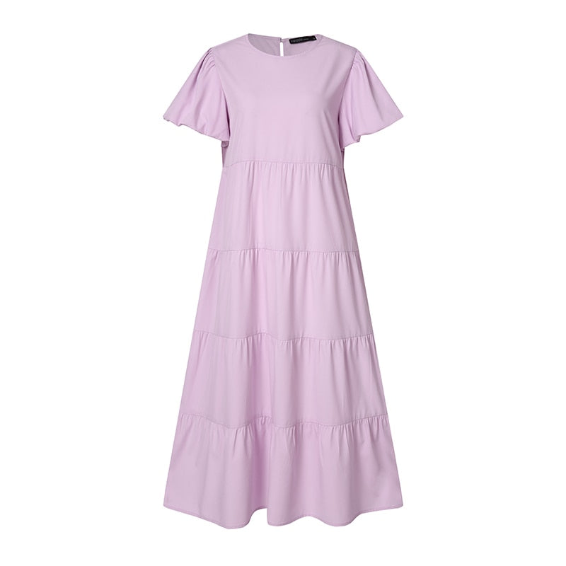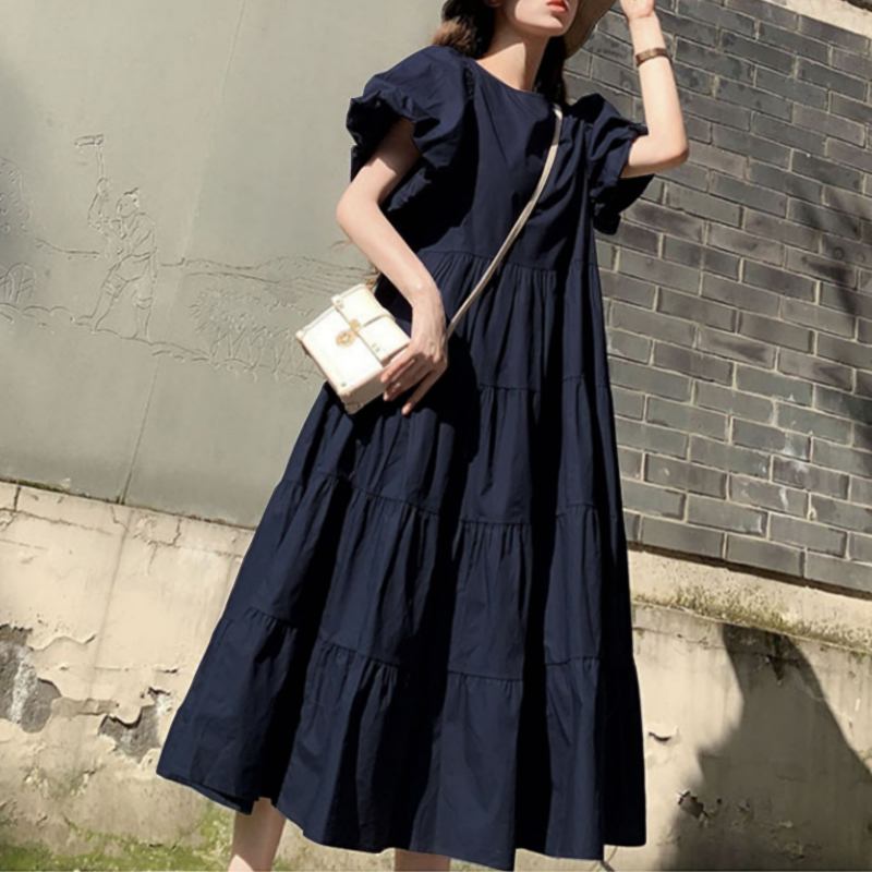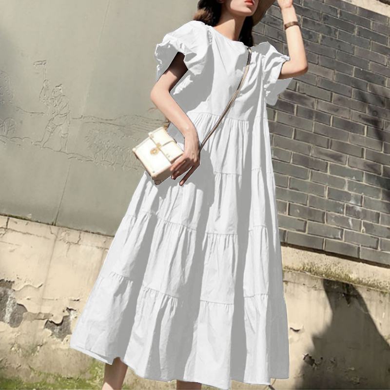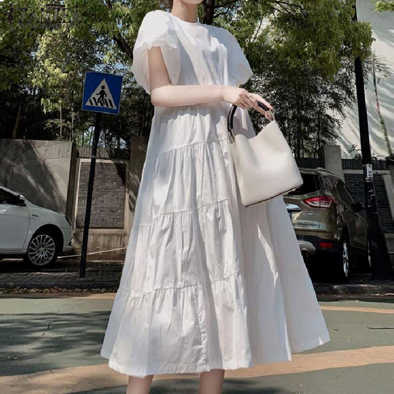 Women Summer Sundress Vintage Short Puff Sleeve Dress ZANZEA Fashion Party Long Vestidos Solid Kaftan Dresses Baggy Robe Femme