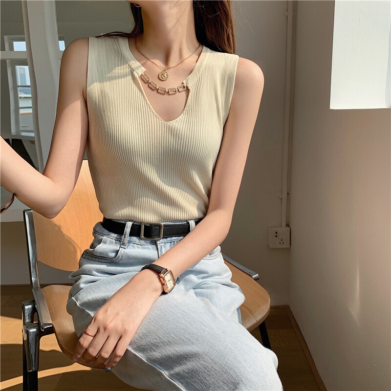 Women Summer V-Neck Knit Slim Tank Top Female Solid Casual Sleeveless Camisole Crop Top Streetwear