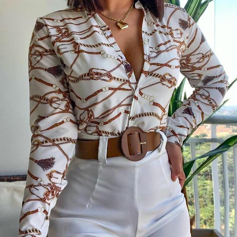 Women Vintage Floral Print Lacing Blouse Shirt Autumn Long Sleeve Sexy V Neck Ladies Top Casual Button Female Fashion Slim Blusa