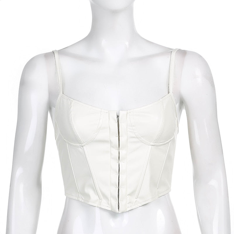 Women's Corset Sexy Black PU Leather Bustier Crop Top Fashion Lady Sleeveless Strap Camis Clubwear Summer Low-cut Slim Camis