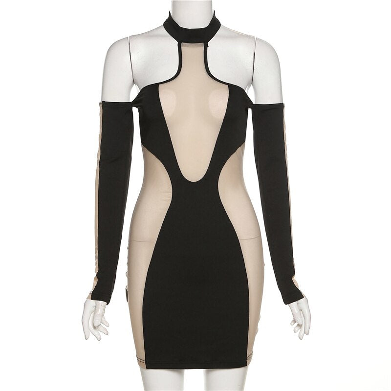 wsevypo Sexy Off-Shoulder Halter Bodycon Dress Women Long Sleeve Backless Wrap Mini Sheath Dress Club Street Grunge Nightwear