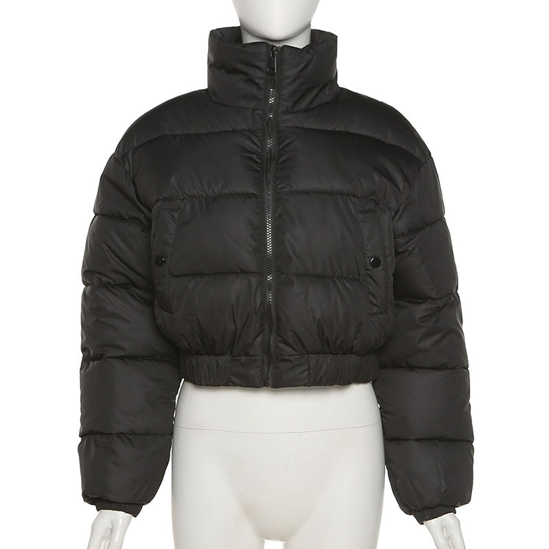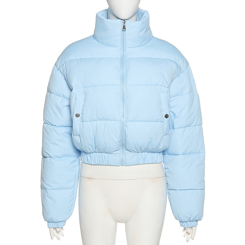 Y2K 2022 Fall Winter Fashion High Collar Black Blue Coat Casual Parkas Long Sleeve Warm Women's Spring Winter Jacket