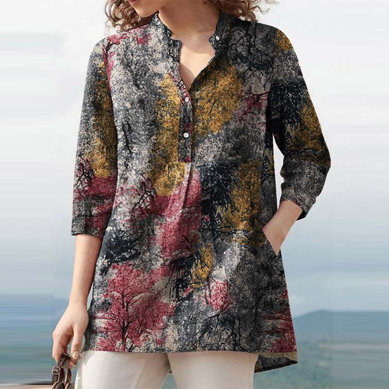 Model Number: Female Printed V-Neck Long Tops Tunic Blouse
