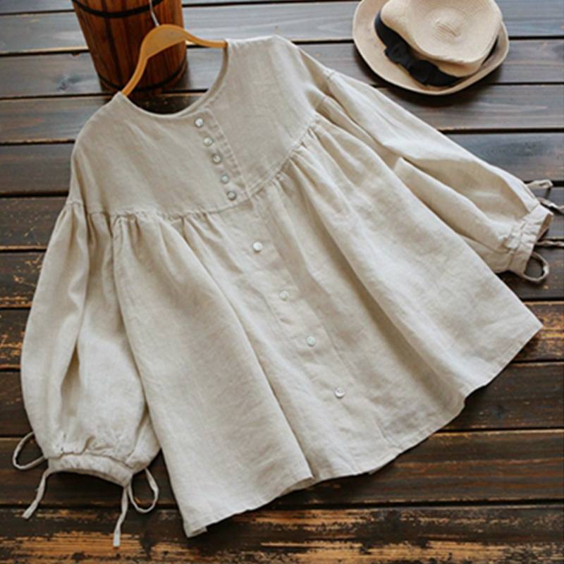 ZANZEA 2022 Spring Vintage Lantern Sleeve Blouse Women Buttons Down Solid Cotton Linen Top Tunic Ruffle Shirt Casual Blusas Robe