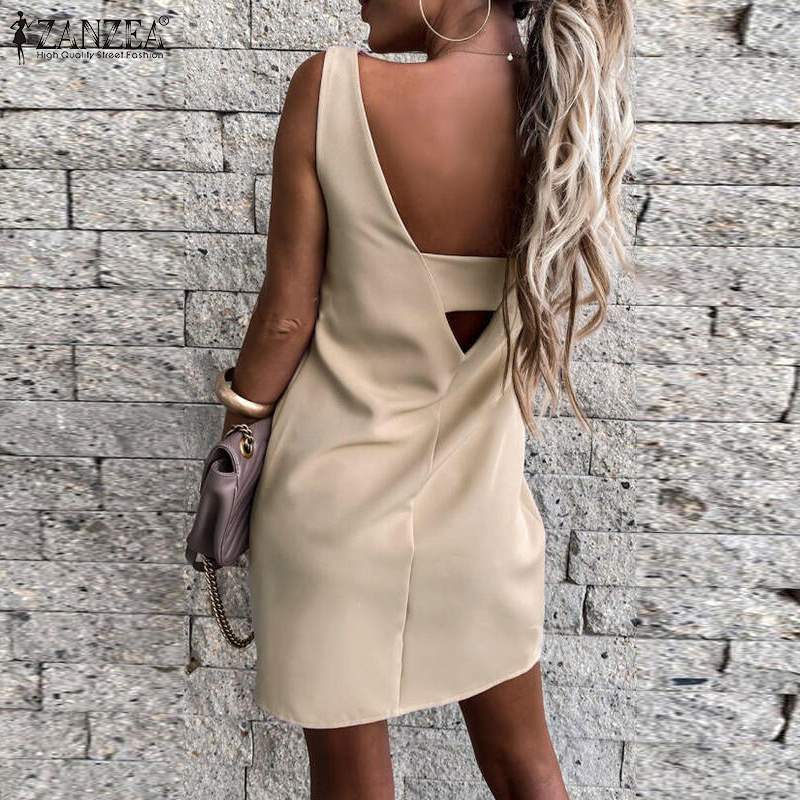 ZANZEA 2022 Summer Sleeveless Club Party Vestidos Sexy Women Backless Mini Dress Fashion Solid Short Sundress Casual Dresses